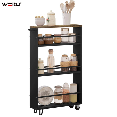 BukkitBow - Stevige Keukentrolley met Wijnrek, 360° Wielen, Veelzijdige Opbergfunctie - 90x40x83.5cm