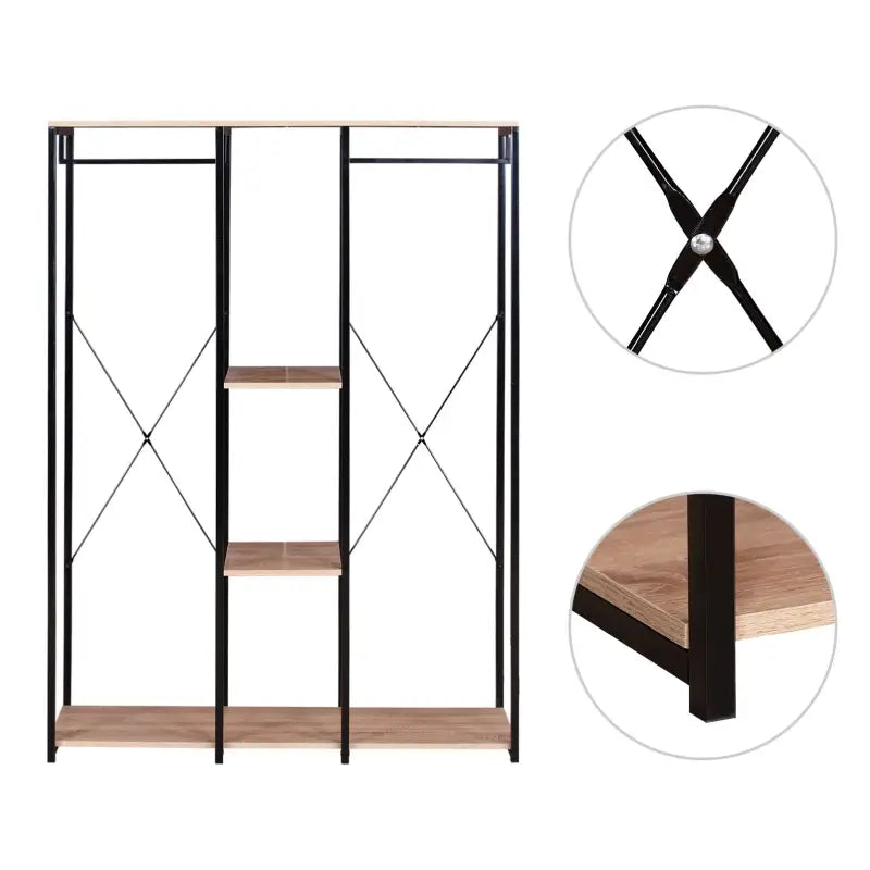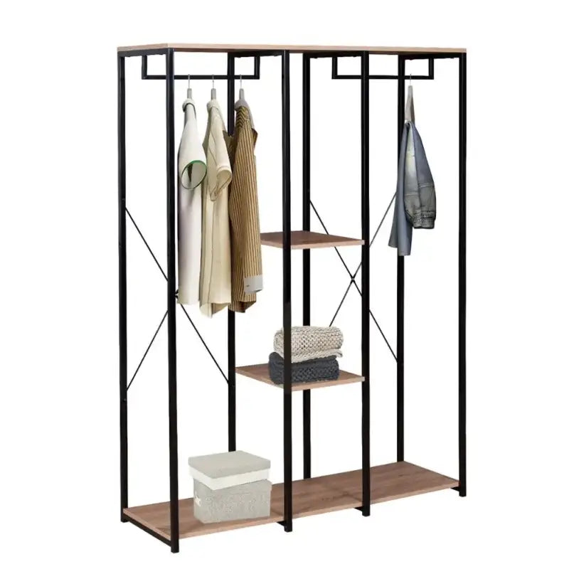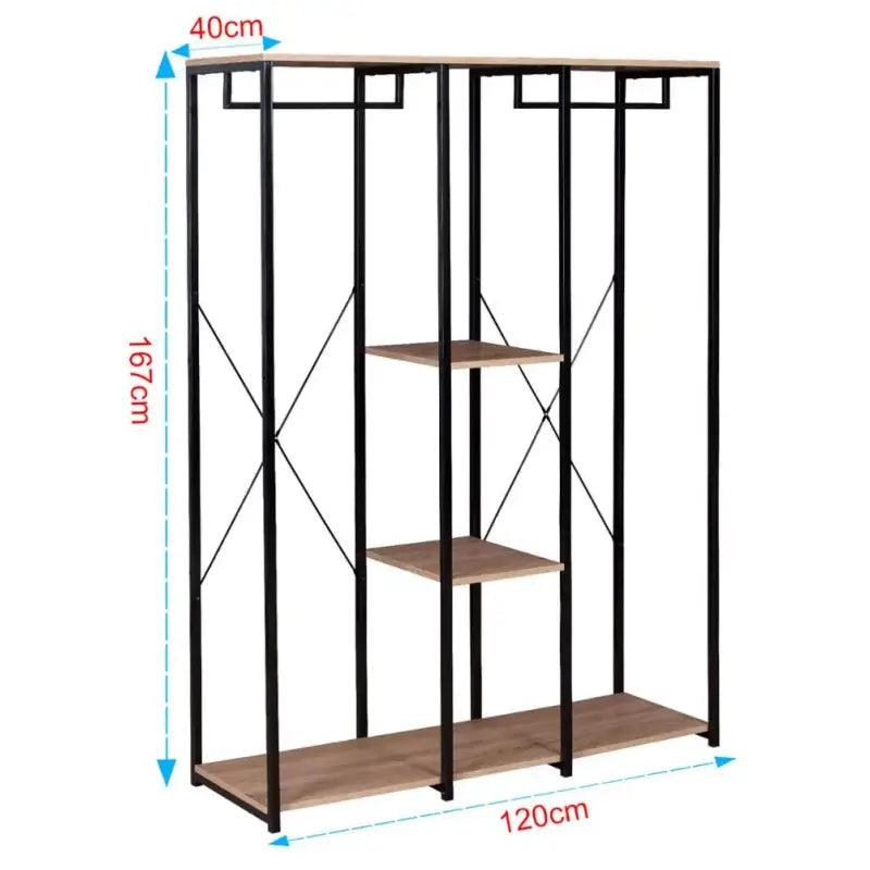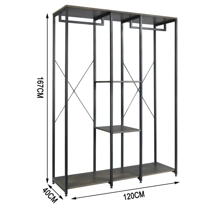 Mit diesem doppelten Kleiderständer von BukkitBow ergänzen Sie Ihr Zuhause nicht nur um ein funktionales Element, sondern auch um ein Stück stilvolles Design. Das aus hochwertigem Metall und MDF-Platten gefertigte Regal bietet eine robuste Konstruktion, die dem täglichen Gebrauch standhält. Maße ca. 120 x 40 x 167 cm (L x T x H) bietet es reichlich Platz, um Ihre Kleidung ordentlich aufzuhängen und Accessoires aufzubewahren.