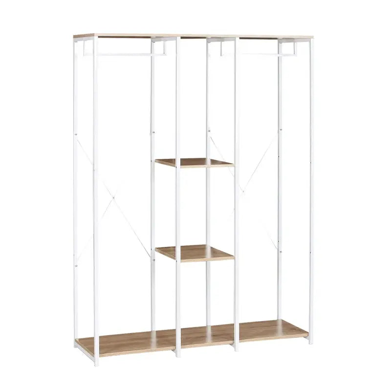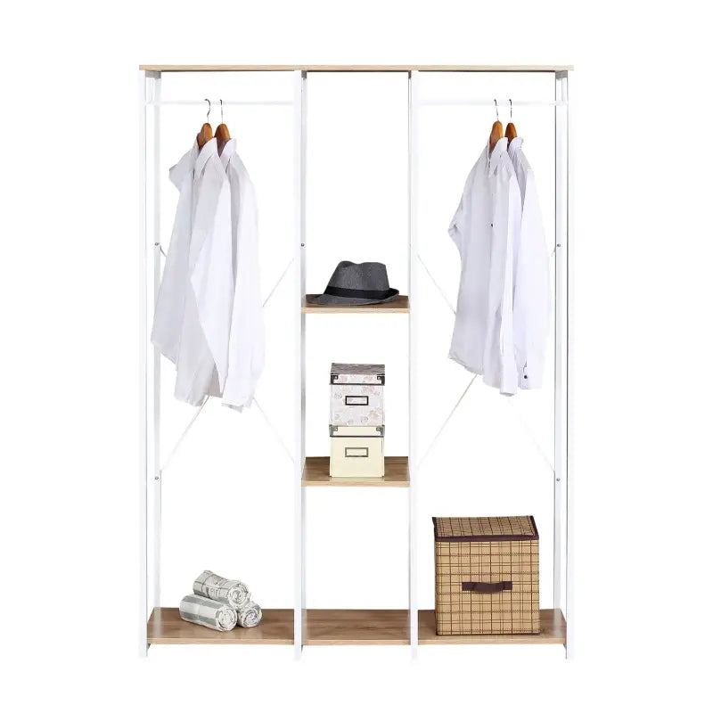 BukkitBow – Doppelgarderobe/Doppelkleiderständer – Mit Kleiderbügeln und 2 Ablageflächen zur Aufbewahrung – Inklusive Schuhaufbewahrung – 40X120X167CM - Weiß mit heller Eiche wurde nachbestellt und wird versendet, sobald es wieder auf Lager ist.