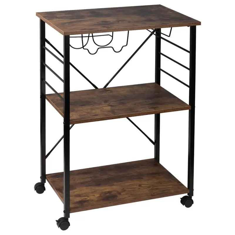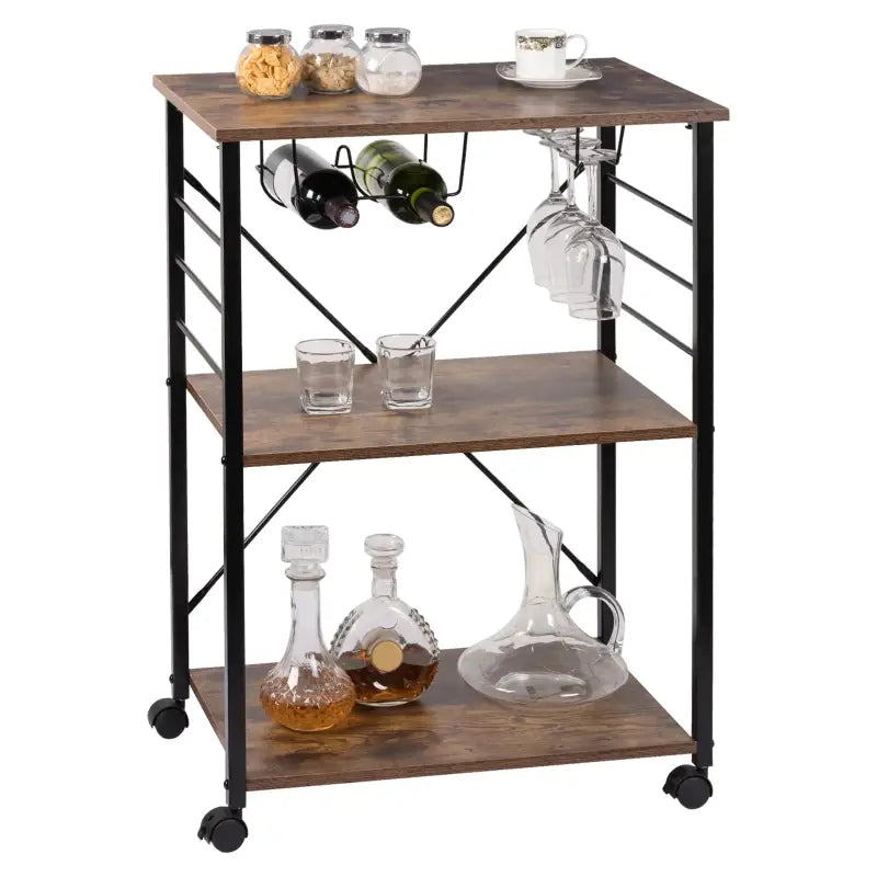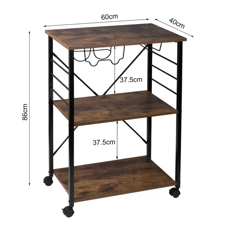 BukkitBow – Küchenwagen – inklusive Rädern mit Bremse – Design mit Weinregal und Glashalter – großer Stauraum – 60 x 40 x 86 cm