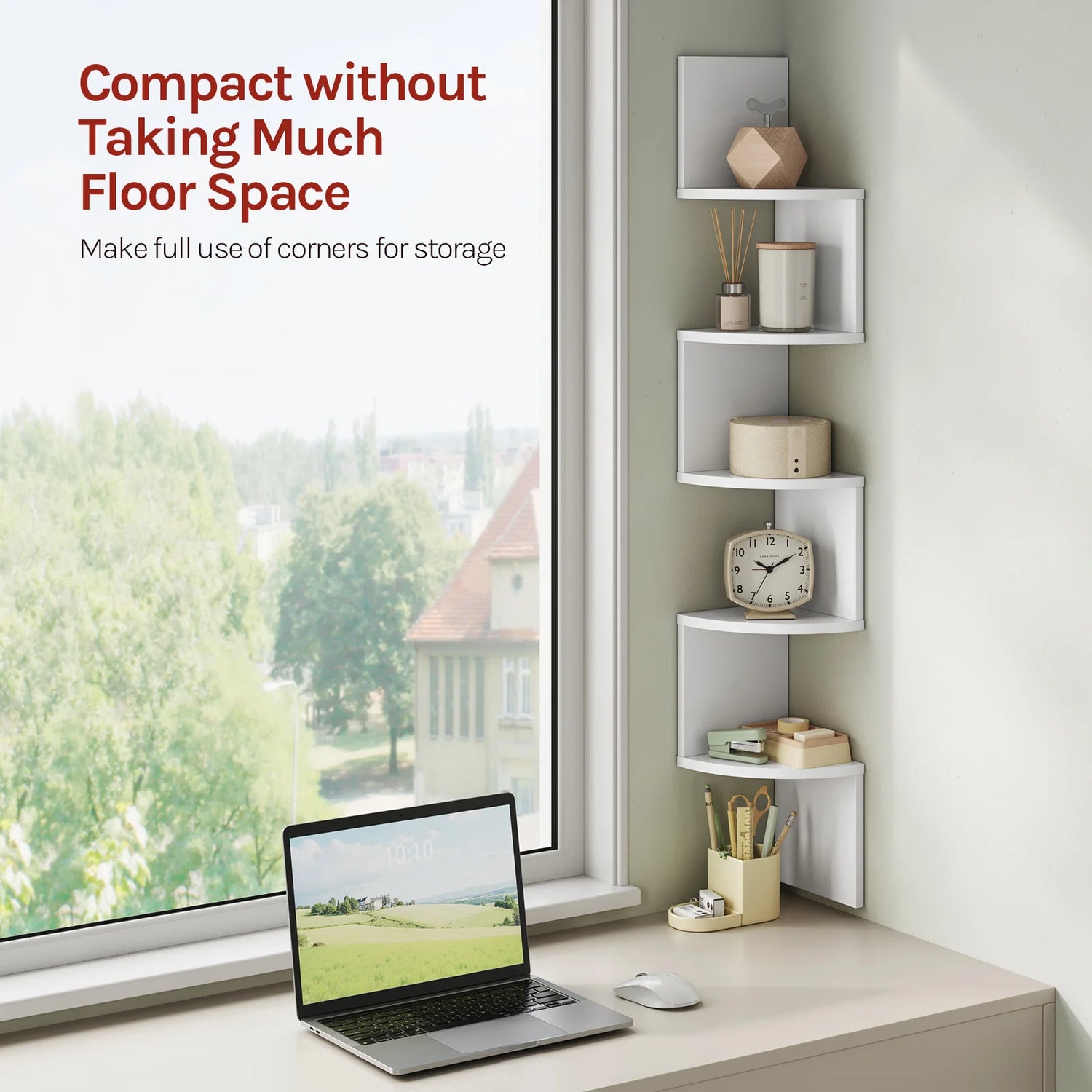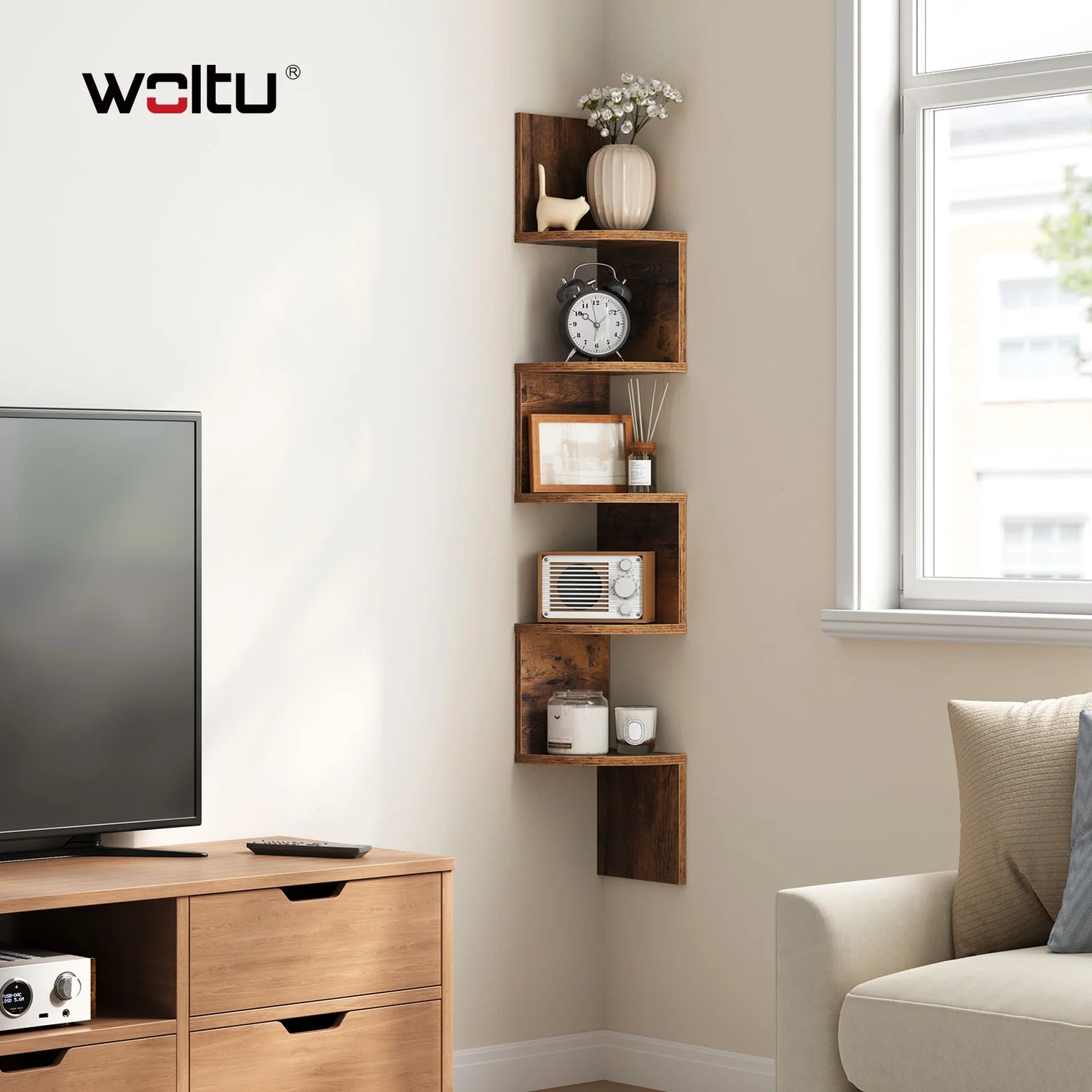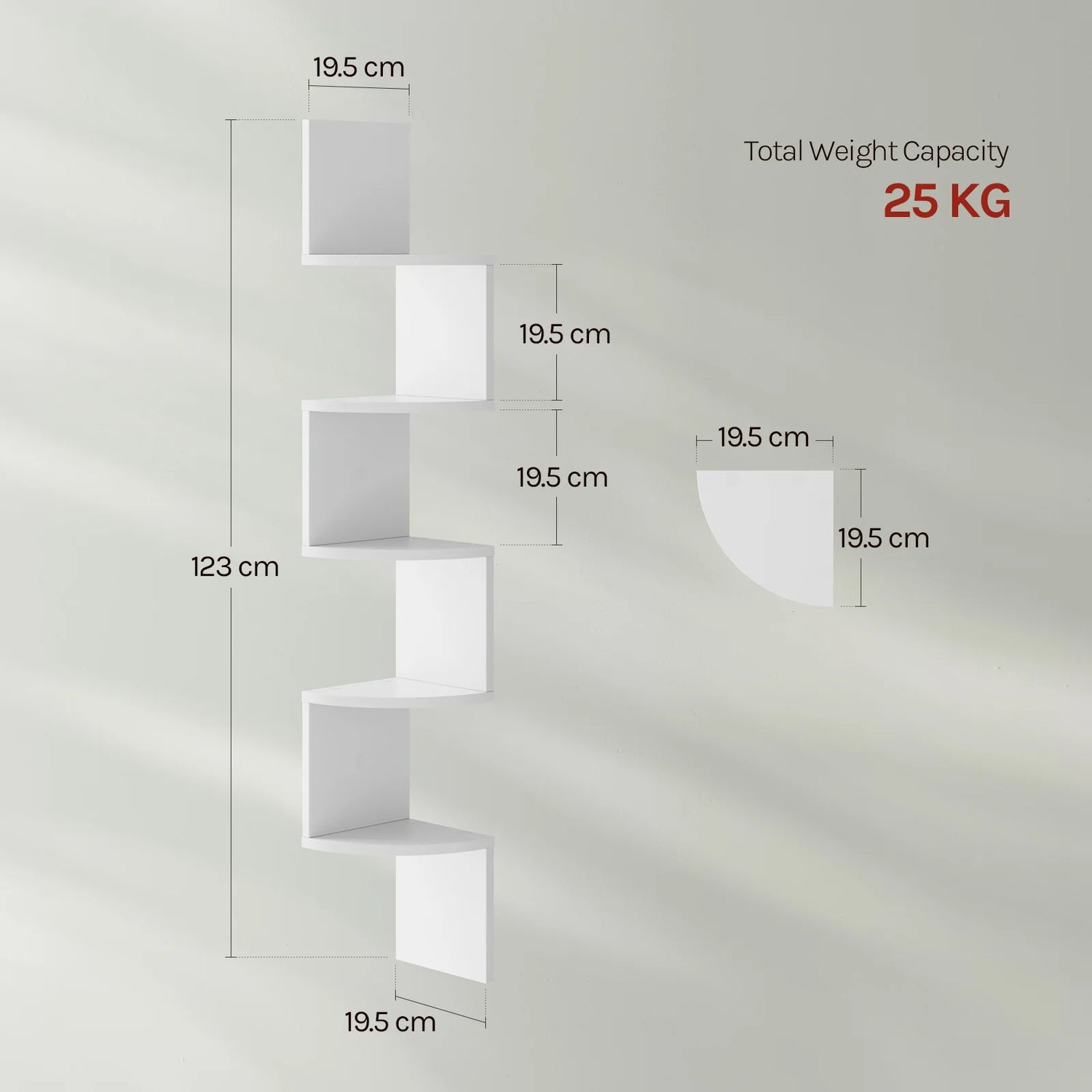 Heeft u in uw woning ook van die ongebruikte hoeken die wel wat extra sfeer kunnen gebruiken? Deze innovatieve zigzag wandplank is de ideale oplossing om elke muurhoek optimaal te benutten. Het unieke ontwerp sluit naadloos aan op de contouren van uw muur, waardoor u vijf praktische niveaus creëert voor uw favoriete boeken, planten of decoraties. Met een hoogte van 123 cm voegt deze zigzag hoekplank direct ruimtelijke diepte toe aan uw interieur, terwijl u kostbaar vloeroppervlak bespaart. Of het nu gaat om de woonkamer, slaapkamer of badkamer, deze wandplank maakt van elke hoek een visueel hoogtepunt.