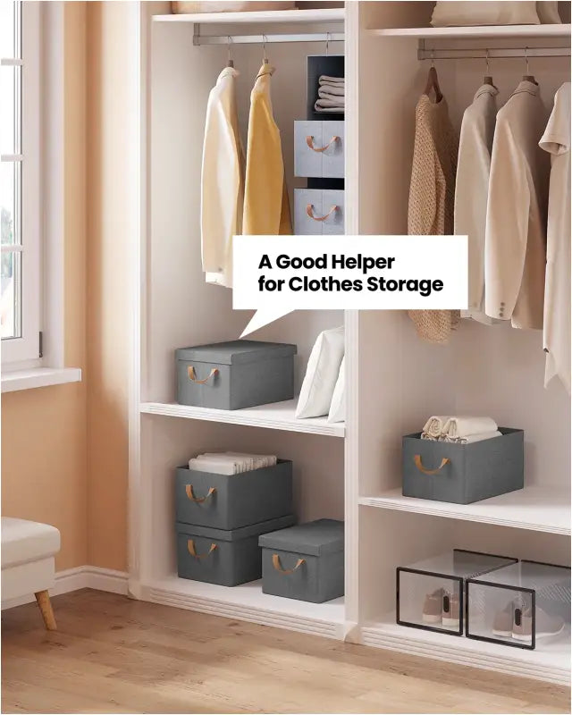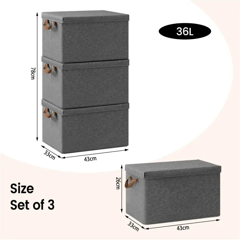 Jede Aufbewahrungsbox ist mit einem praktischen Deckel ausgestattet, den Sie öffnen können, um leicht auf den Inhalt zuzugreifen oder Ihre Sachen vor Staub und Schmutz zu schützen. Dank der praktischen Griffe ist das Bewegen der Boxen ein Kinderspiel, sodass Sie sie bei Bedarf mühelos neu organisieren können. Das Design ist durchdacht und besteht aus atmungsaktivem Polyestergewebe, das reiß- und abriebfest ist, während die Kunststoffbodenplatte dafür sorgt, dass die Box stabil bleibt, ohne an Gewicht einzubüßen.