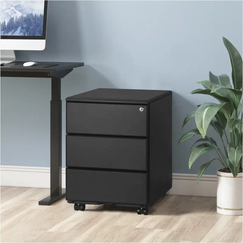 Le design moderne et pratique de ce classeur s'intègre parfaitement dans n'importe quel bureau ou espace de travail à domicile. Avec sa texture métallique élégante et ses tiroirs sans poignées, il offre un look minimaliste avec une fonctionnalité maximale. De plus, cette armoire est livrée entièrement assemblée, vous ne perdez donc pas de temps dans une installation compliquée. Il ne vous reste plus qu'à décider si vous souhaitez ou non attacher les 5 roues (dont 2 avec freins) et vous êtes prêt à partir.