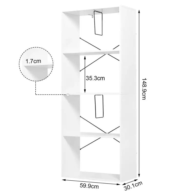 BukkitBow - Bibliothèque à 4 niveaux - avec protection contre l'inclinaison - Vitrine - en bois durable - (60x30X149cm)