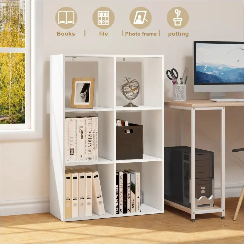 BukkitBow - Bibliothèque peu encombrante - 6 compartiments cubiques - Multifonctionnel - Design stable - 71x106x29cm