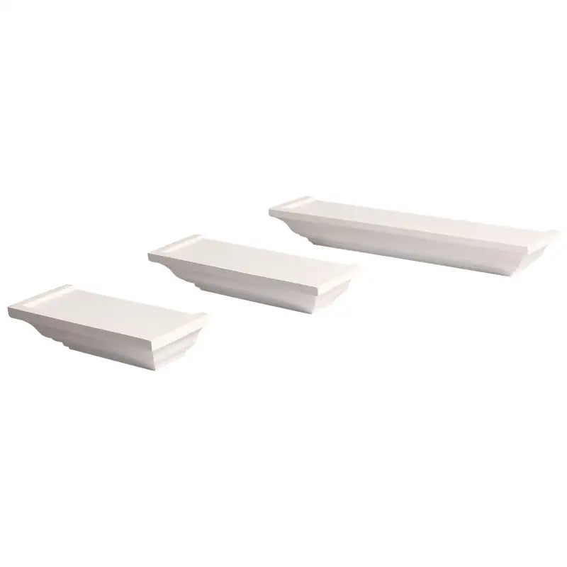 Avec des dimensions de 45,7 x 10,2 x 6,6 cm, 30,4 x 10,2 x 6,6 cm et 25,4 x 10,2 x 6,6 cm, cet ensemble de 3 étagères flottantes offre non seulement une solution esthétique, mais également un espace de rangement pratique dans divers espaces comme le salon. pièce, bureau, chambre, salle de bain et plus encore. La finition laquée à 5 couches offre une surface lisse et uniforme, donnant aux planches un aspect raffiné et créant une sensation d'espace.