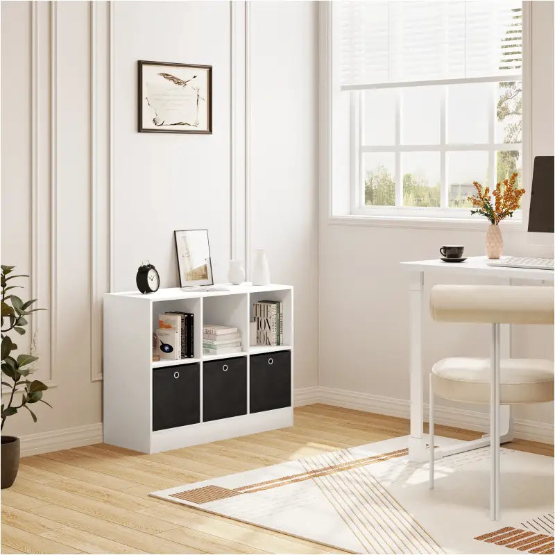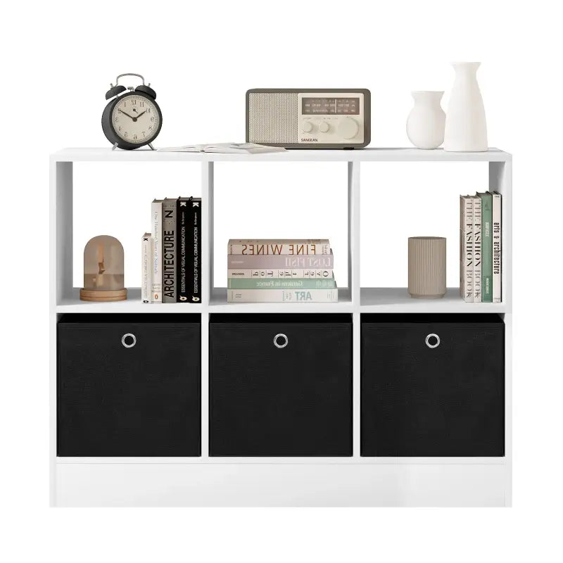 Met 6 open kubussen biedt deze boekenkast ruimte voor boeken, cd's, tijdschriften, speelgoed, kleding en decoratieve objecten. De 3 lades in niet-geweven stof helpen je om je spullen georganiseerd te houden en uit het zicht te bewaren. Of je nu een opslagplank, speelgoedplank, boekenplank of slaapkamerkast nodig hebt, deze boekenkast past zich gemakkelijk aan jouw behoeften aan.